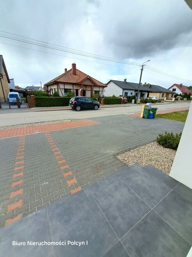 Działka częściowo ogrodzona, w dużej części wyłożona kostką brukową.