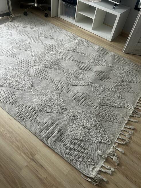 Sprzedam szary dywan używany przez 6 miesięcy w dobrym stanie o wymiarach 160-120